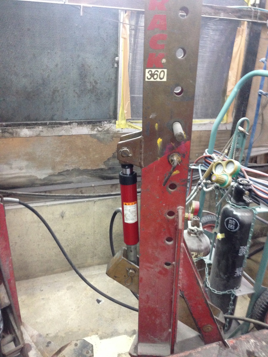 開業当時に譲って頂いたフレーム修正機長年にわたりいろんな車を修理してきました。最近調子が悪くなり部品を取り換えることに 涙 フレーム修正機の心臓部分油圧ラムです通常は10トンの力で曲がったフレームを引っ張ります1 取替完了!また10トンで引っ張れるようになりました!